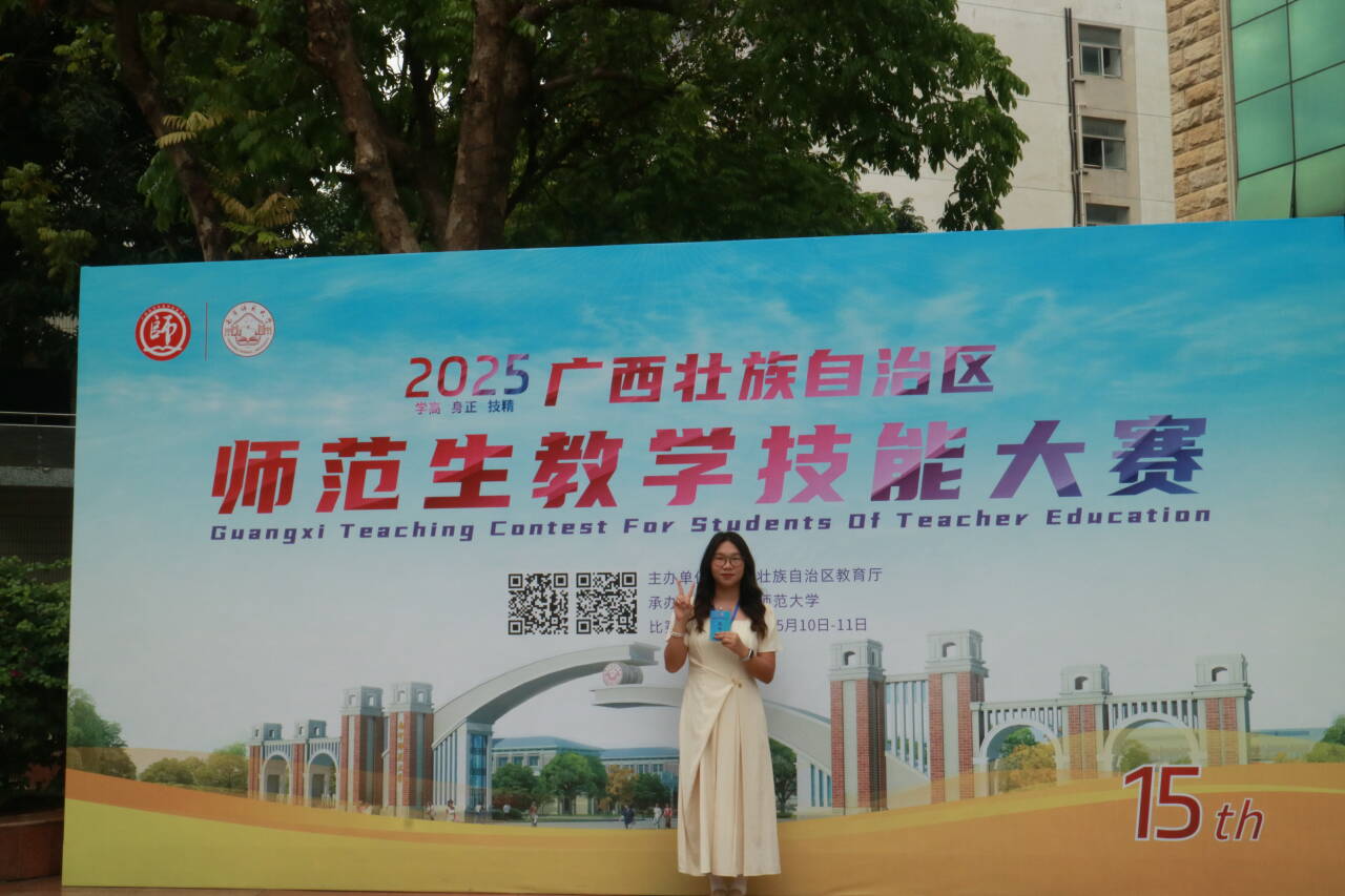 近日,2025年全区师范教学技能大赛获奖名单正式公布,yl8cc永利官网2022级思想政治教育专业3班郑纯纯斩获高中组一等奖,2022级思想政治教育专业1班梁杏冰荣获初中组三等奖。