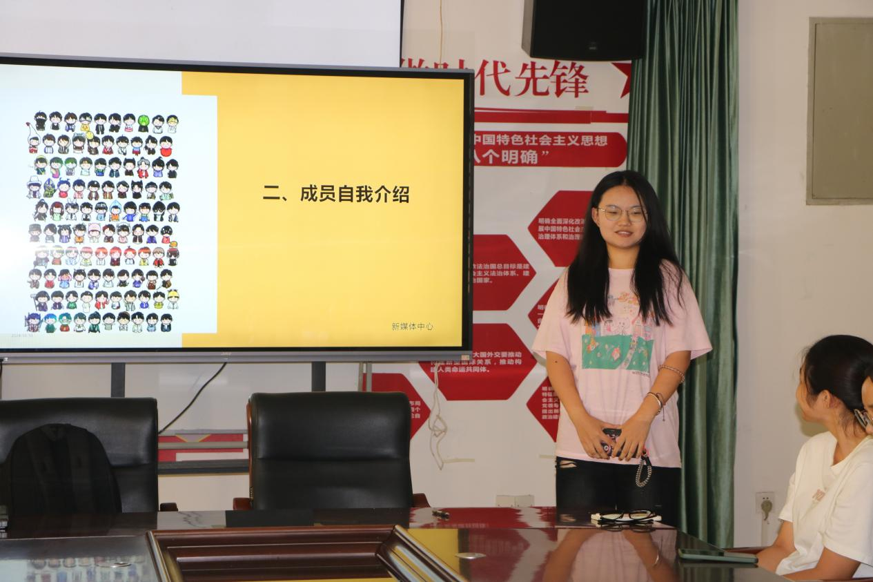 见面会开始,甄义明首先对新成员的加入表示了欢迎,介绍了新媒体各个部门的负责人,并对大家作出工作问题讲解。随后,新成员上台作出自我介绍,对彼此有了更多的了解。在学生干部培训会议中,各部长召集相应部门的新成员详细介绍了工作的注意事项及工作方法,新成员纷纷表态发言,表达了对工作职责的的理解与担当。最后团委主席卢霞对大家提出期望,勉励大家要注重内在世界的修养,修炼潜心做事的沉稳静气,为学院宣传工作贡献自己的力量。